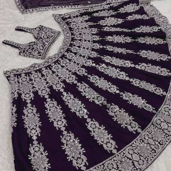 Dark Violet Kasturi Silk Lehenga Choli with Sequins & Thread Embroidery | Bridal & Party Wear Lehenga Set with Dupatta