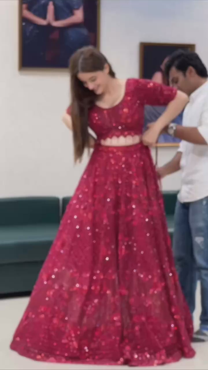 Turn every head at your next celebration with this deep maroon lehenga choli, designed for brides, bridesmaids, and party wear lovers who adore luxury handwork.