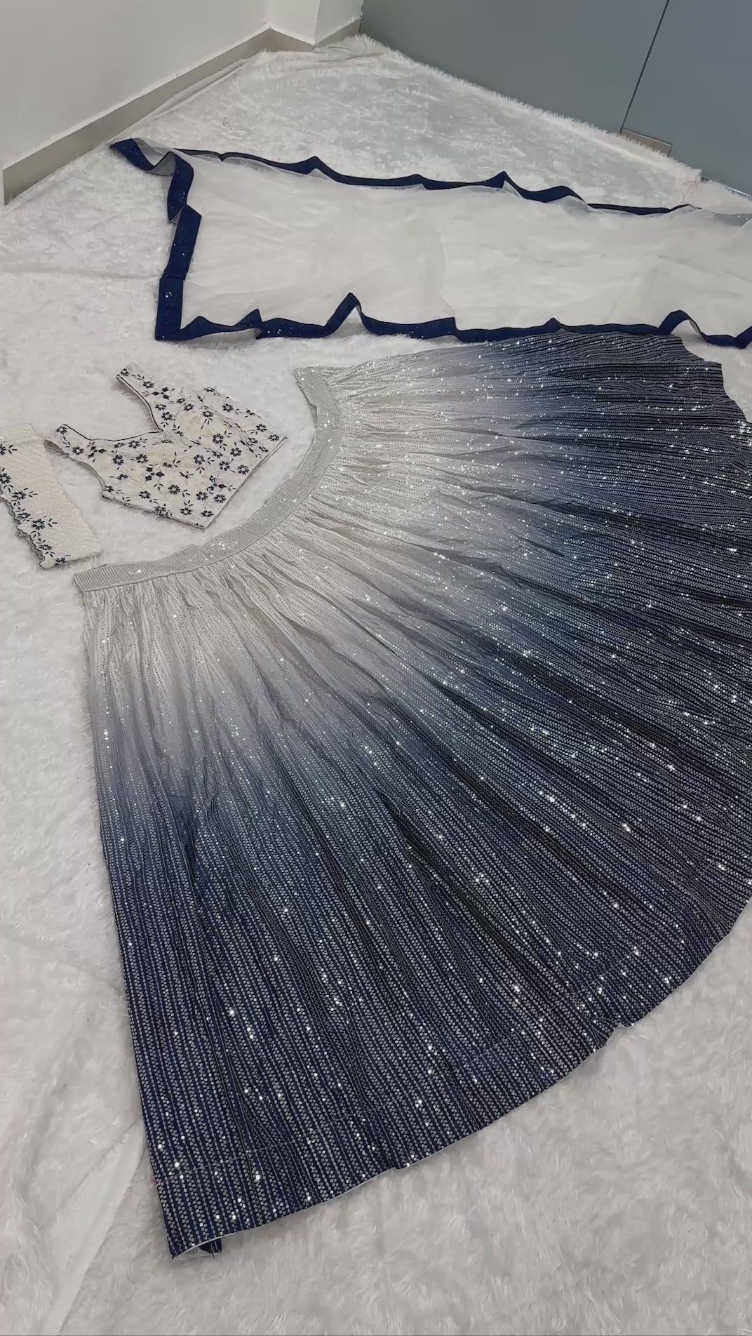 > Shaded Georgette Silk Lehenga with Sequins Work